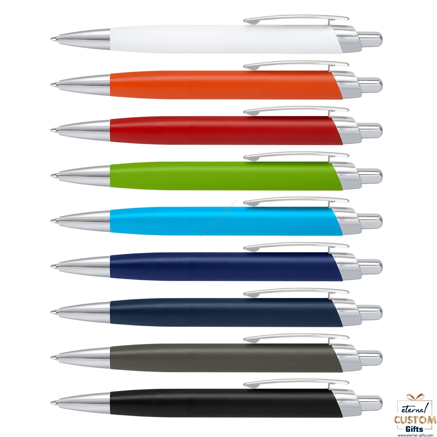 Pen – White, Orange, Red, Bright Green, Light Blue, Royal Blue, Navy, Gunmetal, Black.