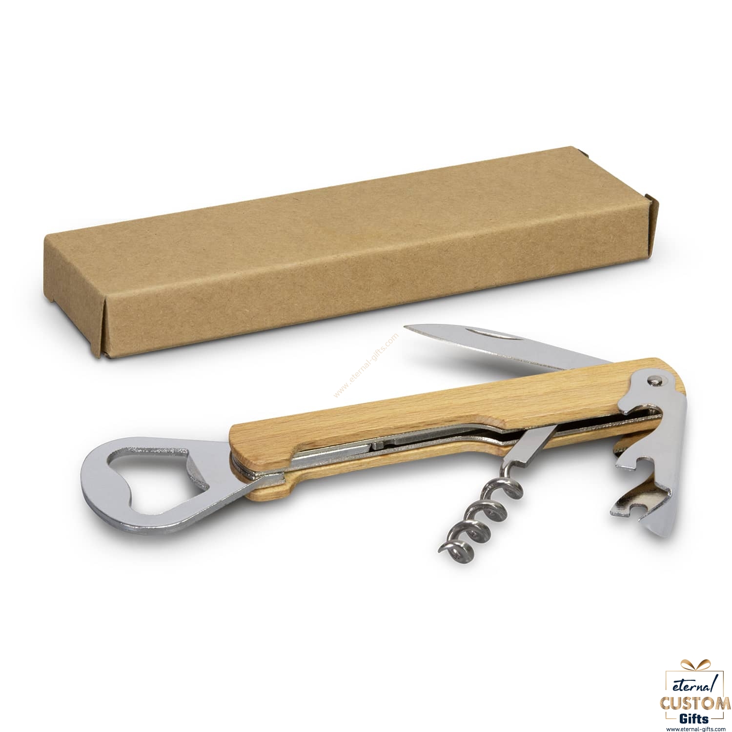 - Multi-function design featuring a built-in bottle opener, corkscrew, and foil cutter