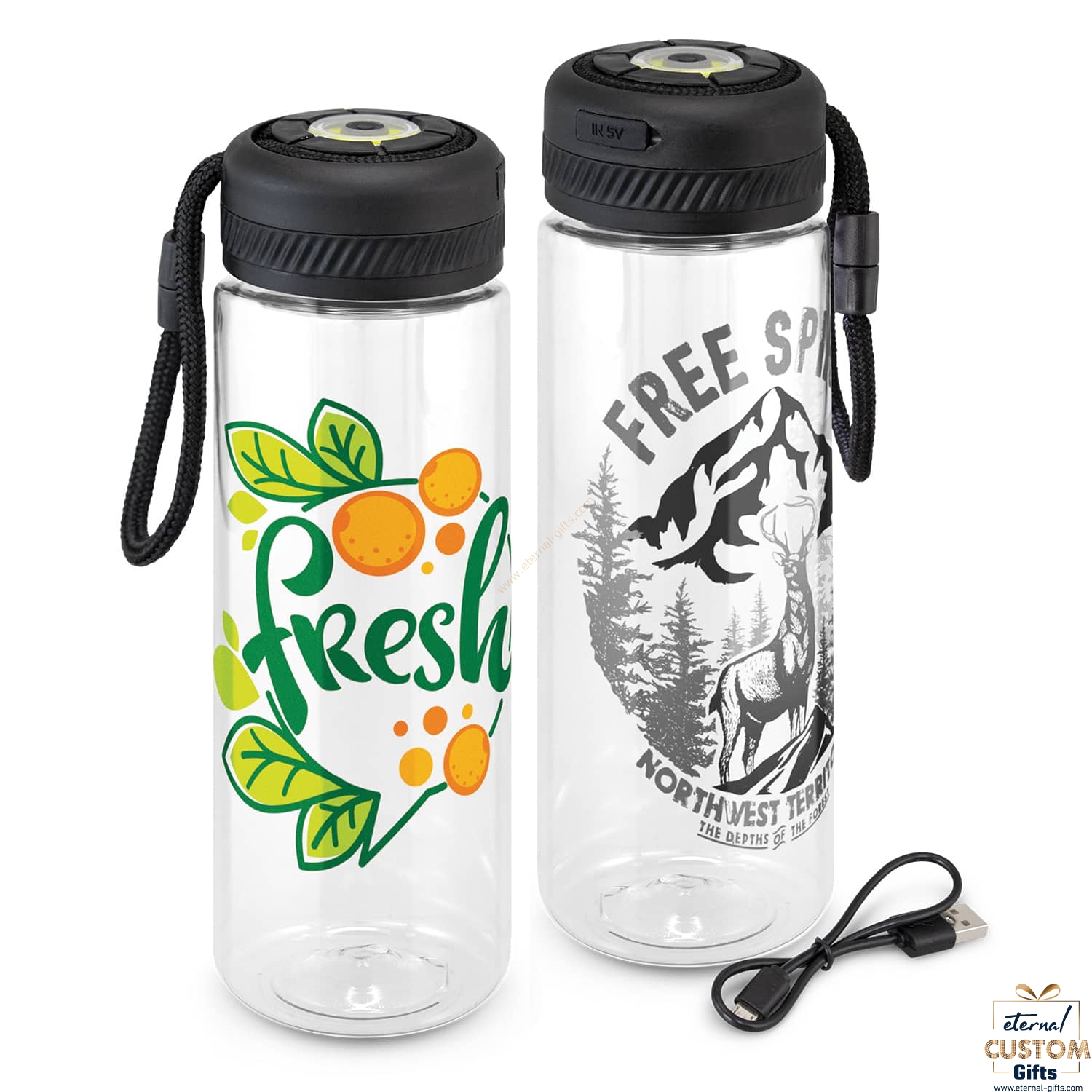 Technology-driven, 700ml water bottle that is manufactured from crystal-clear Tritan which is BPA-free, shatterproof and odour-resistant. It has a unique screw on lid with twin light functions that use radical COB (Chips on Board) technology to increase light intensity and battery life. Lumino can be used as a powerful torch or a lantern and it is easily recharged from a laptop, a power bank or a USB mains adapter. Other features include push button operation and a strong woven carry loop which can be attached to a bag. It is presented in a black gift box with a Micro-B USB cable and an instruction leaflet. This product is not dishwasher safe and handwashing is recommended.