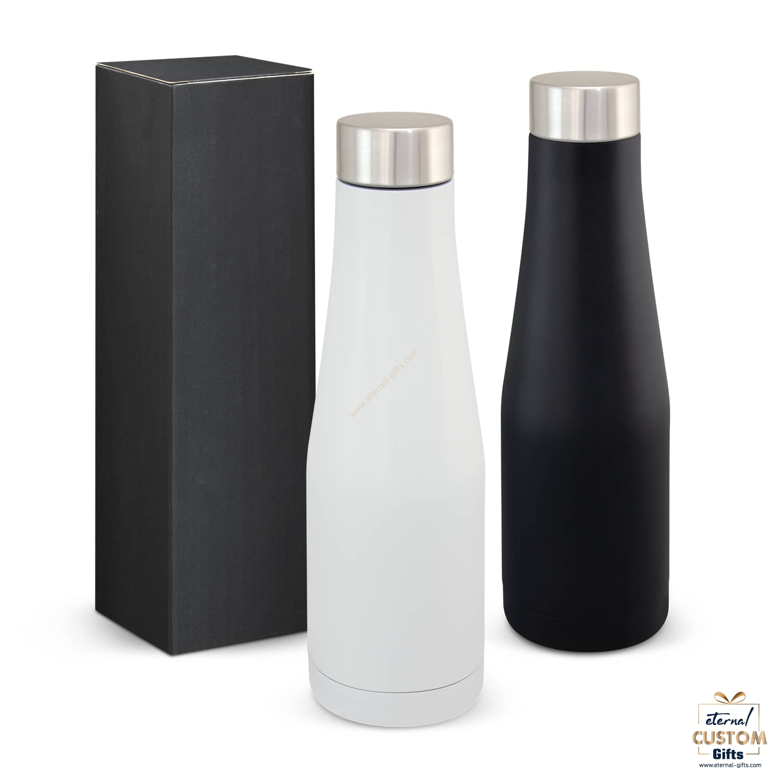 Compact 500ml, double wall vacuum insulated stainless steel drink bottle with a stunning streamlined design. It has a secure screw on stainless steel lid and will keep drinks cold for 24 hours and hot for up to 12 hours. Velar is BPA free and laser engraves to a shiny steel finish. It is presented in a black gift box. This product is not dishwasher safe and handwashing is recommended.