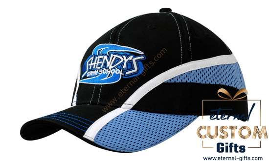 branded Brushed Cotton with Mesh Inserts & Fabric Stripes on Crown & Peak caps