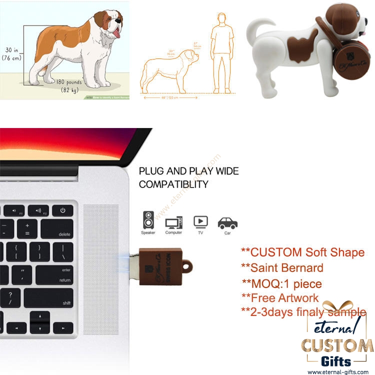 Description Custom 3D Dog ShapeUSB Flash Drive USB 2.0 /3.0 chips for choice.