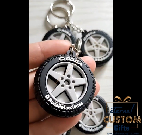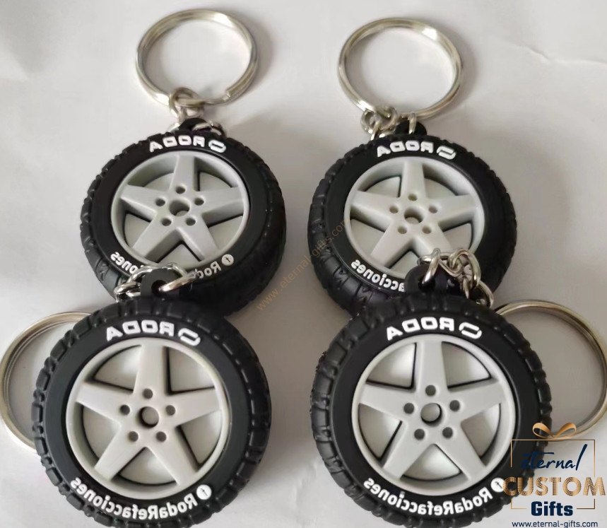Description Custom 3D PVC tyre shape keychain
