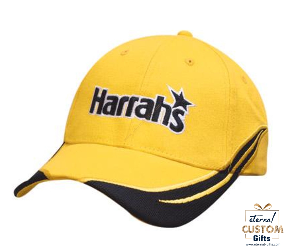 Custom Baseball capswith Peak & Crown Inserts with Embroidered Trim