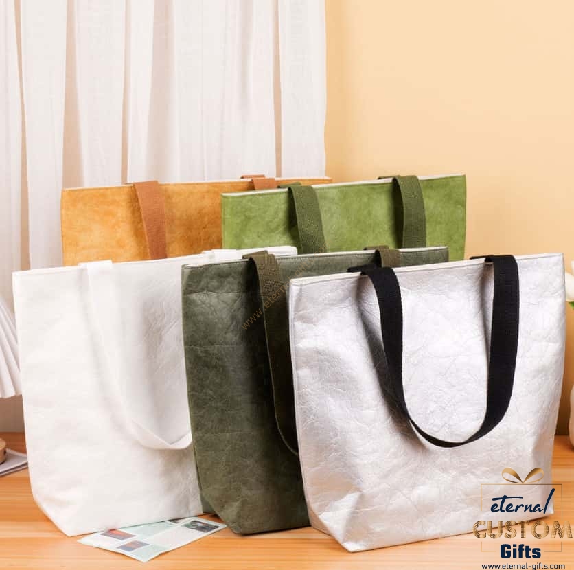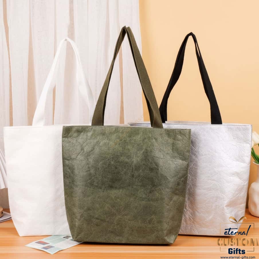 Description #custom fashion tote bag Material: outside Tyvek, the Tyvek look has become very popular and the material ifself is lightweight and extremely durable