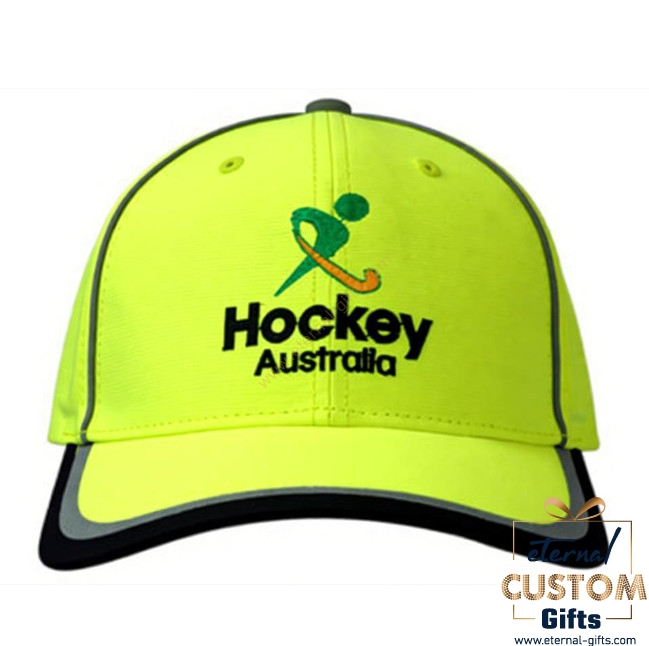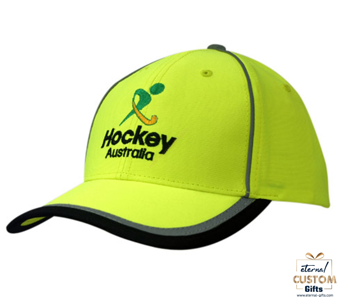 Custom Luminescent Safety Cap with Reflective Piping/Stripes on Crown & Peak