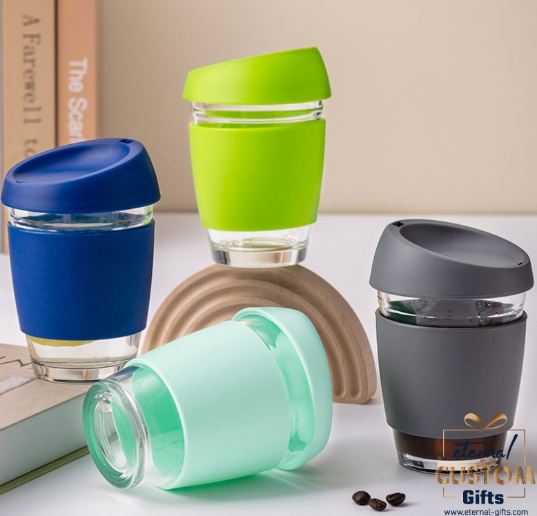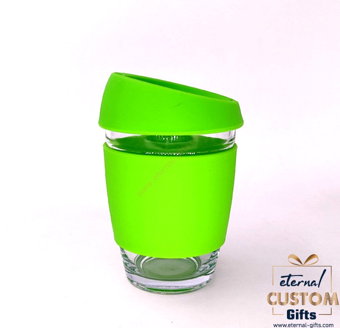 Description Custom printing 12OZ Glass cup with silicon cover and wide band Size:350ml (12OZ)