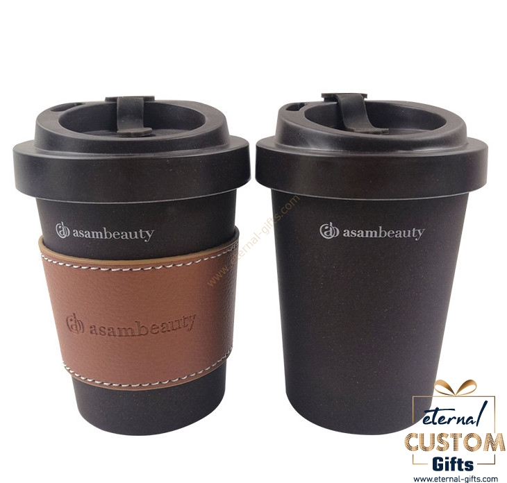 Custom printing Biodegradable Coffee grounds material 350ml coffee cup with band