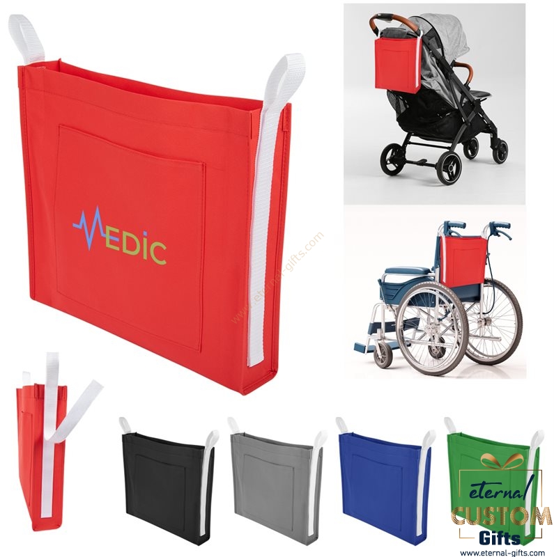 Made from 100-gram non-woven, water-resistant polypropylene, it’s built to last. The hook and loop straps allow for easy attachment to wheelchairs or strollers. Available in various colours like Black, Grey, Kelly Green, Red, and Royal Blue.