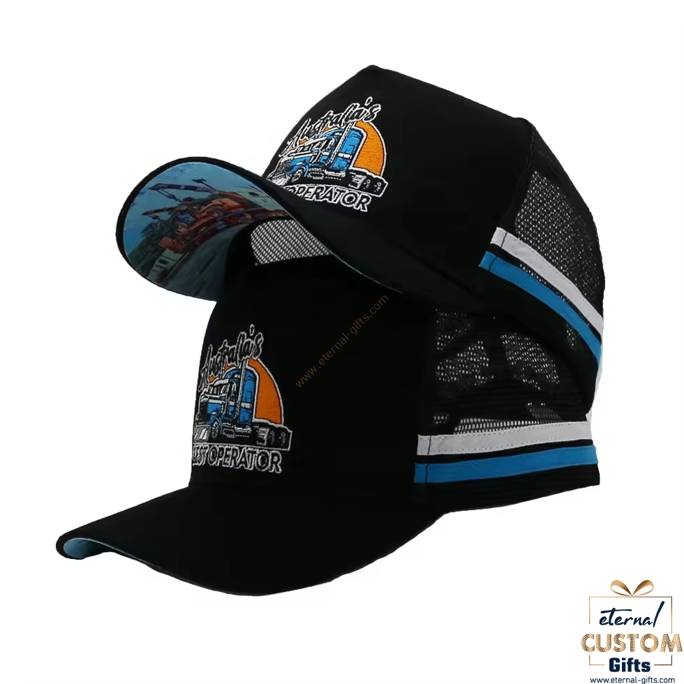 Description #Custom fashion 5 panel mesh trucker hats digital printing
