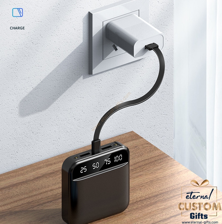 Function: dual output and dual input (Android micro port, TYPE-C port)/dual LED lights/2.1A fast charge/digital display