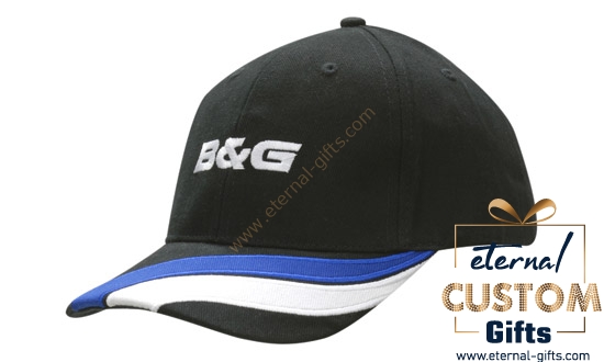 embroidery Brushed Heavy Cotton with Fabric Stripes & Embroidery on Peak caps