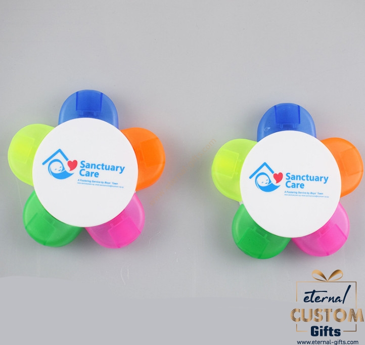 Description Custom Flower-shaped fluorescent marker, student’s back-to-school stationery colored pen, five-color petal doodle pen, fluorescent highlighter pen. Material: ABS & PP caps