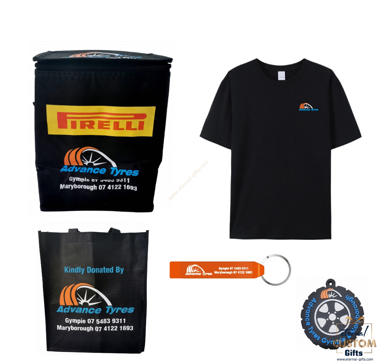 one stop custom advance tyre companies promotional gift sets tote bag/ cooler bag/bottle opener/T shirts gifts set