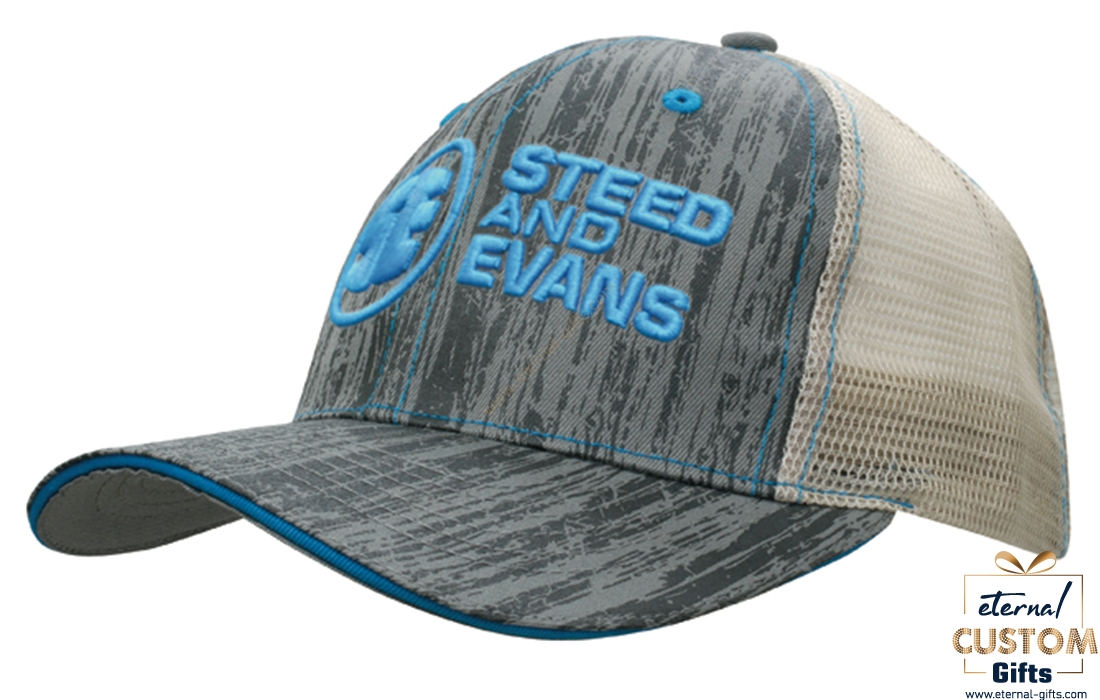 Structured 6 Panel Cap Pre Curved Peak Fabric Covered Short Touch Strap