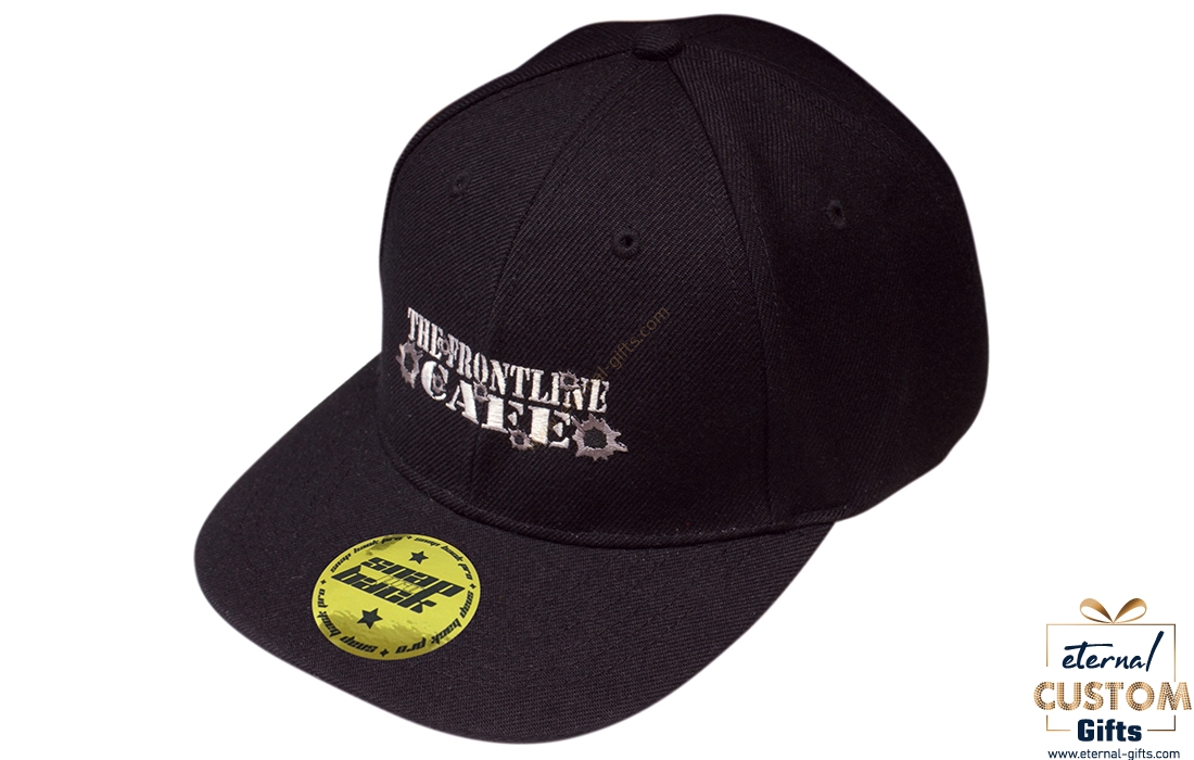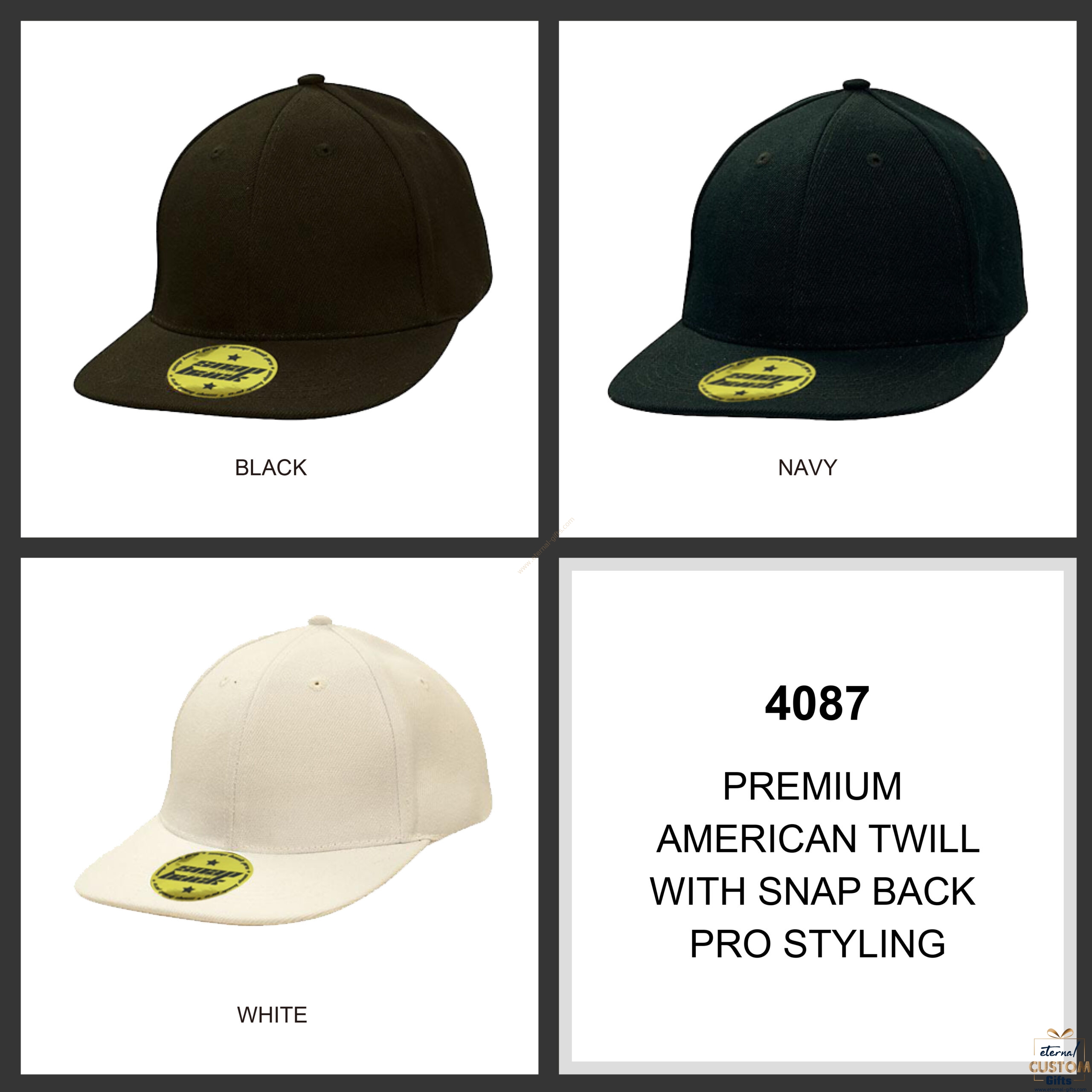 Structured 6 Panel Cap Flat Peak withSnap Back Pro StylingFit Sticker Double Plastic Snap Closure