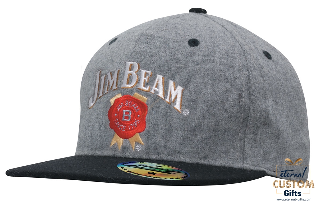 Structured 6 Panel Cap Flat Peak with Snap Back Pro Sticker Double Plastic Snap Closure