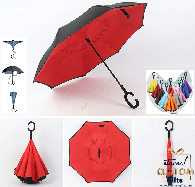Description Car straight rod reverse umbrella manual printing umbrella