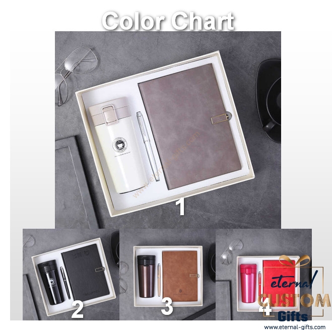 Description set of 3, stainless steel bottle and notebook set Gift includes : A5 notebook + metal signature pen +insulated bottle+ gift box + handbag